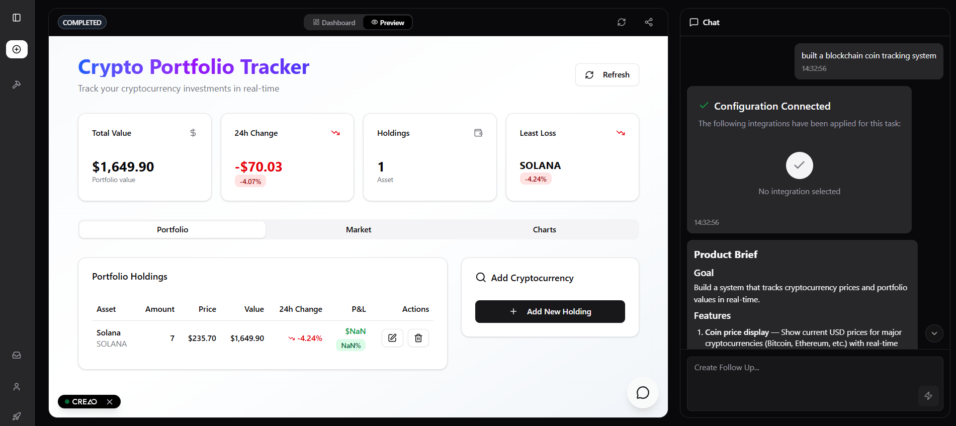 Platform ayrıca geniş bir entegrasyon ağı sunuyor. Kullanıcılar, Creao’nun hazır entegrasyon kütüphanesinden yararlanabiliyor ya da kendi API ve MCP sunucularını ekleyebiliyor. Bu sayede farklı araçların tek bir merkezden yönetilmesi mümkün oluyor ve iş akışları hızla hayata geçirilebiliyor. Geleneksel kodsuz geliştirme araçlarında genellikle yalnızca arayüz düzenleme veya basit bağlantılar öne çıkarken, Creao çok adımlı ve karmaşık süreçleri yönetebilen tam donanımlı uygulamalar üretebiliyor. Bu yaklaşım, Creao’yu yapay zekayı uygulamaların doğal bir parçası haline getiren bir platform olarak öne çıkarıyor.