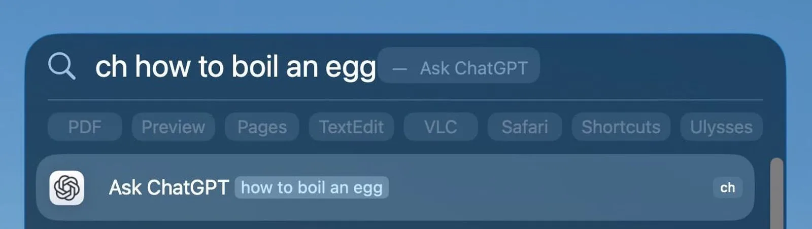 Hızlı Tuşlar, Spotlight’ta yalnızca birkaç karakter kullanarak eylemler gerçekleştirmenize olanak tanıyan kısayollar. Bir Hızlı Tuş ile, birine mesaj göndermek veya bir uygulamayı açmak gibi sık tekrarladığınız bir görevi yapmak için birkaç harf yazabilirsiniz. Kullanmak için Command + Spacebar tuşlarına basarak Spotlight’ı açın, ardından Eylemlere ulaşmak için Command + 3’e basın. ChatGPT’yi Aç gibi istediğiniz eylemi yazın ve göründüğünde Hızlı Tuş Ekle seçeneğine tıklayın. Buradan, “gpt” gibi kısayolunuz olarak 1 ila 12 harf arasında yazabilirsiniz.