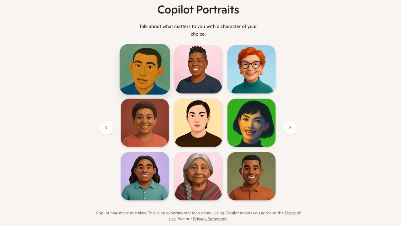 Portraits özelliği, kullanıcıların sesli sohbetleri sırasında karşılarında hareketli bir yüz görmelerini sağlıyor. 40 farklı stilize insan avatarı arasından seçim yapılabiliyor. Bu portreler, gerçekçi olmaktan ziyade stilize edilmiş görünümleriyle dikkat çekiyor ve ağız, yüz ve baş hareketleriyle kullanıcının söylediklerine eşlik ediyor. Böylece Copilot ile sesli sohbet, yalnızca bir arka plan resmi eşliğinde gerçekleşen deneyime göre daha doğal hissettirebiliyor.
