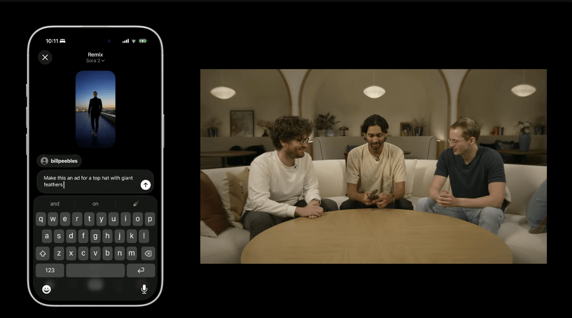 Tanıtımda Sam Altman’ın da yer aldığı birkaç Sora videosu yayınlandı. Sora 2 ile daha uzun uyumlu hikayeler üretilebileceği belirtiliyor. Hem ses hem de videoyu üretiyor. Ayrıca ses efektleri de üretilebiliyor.
